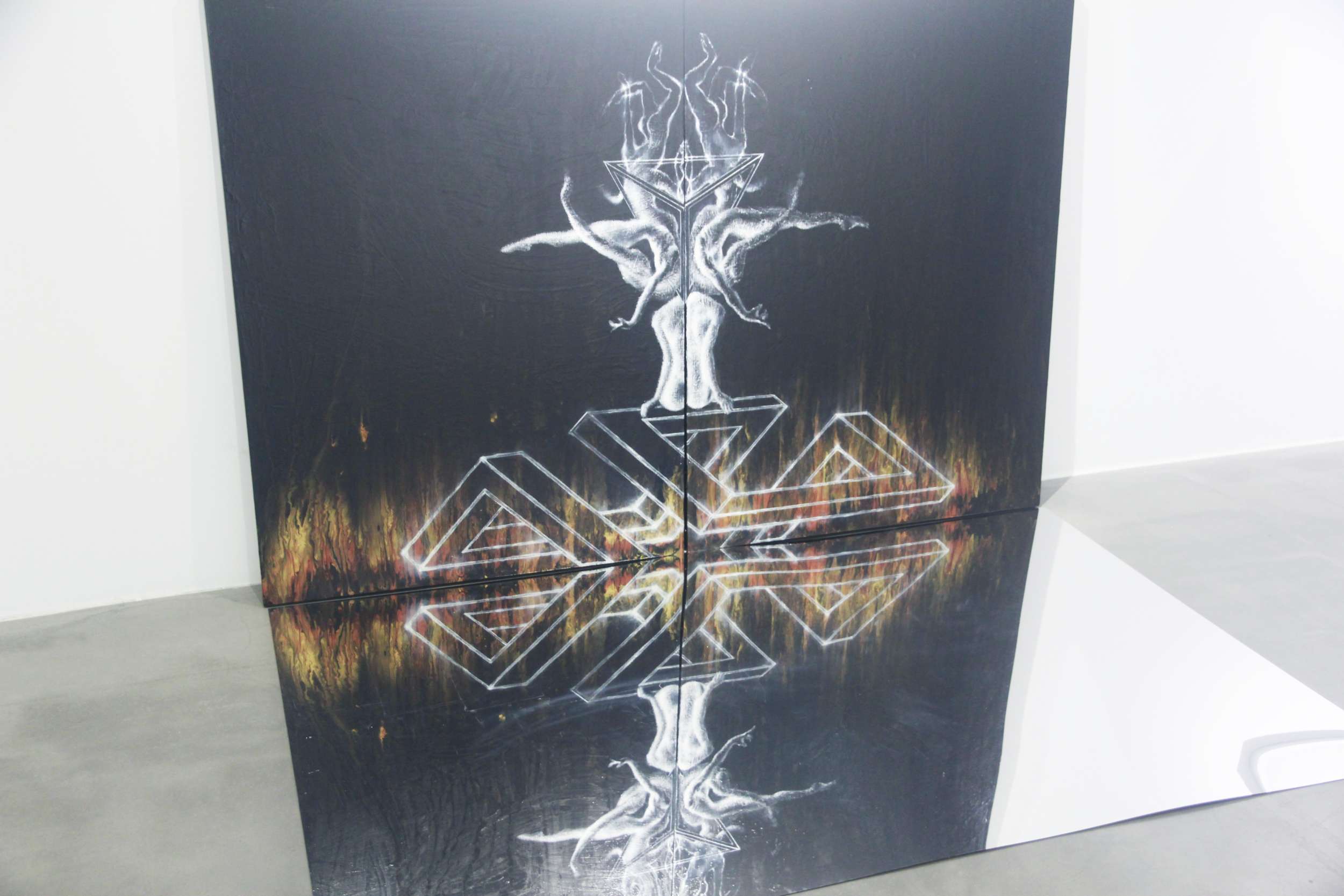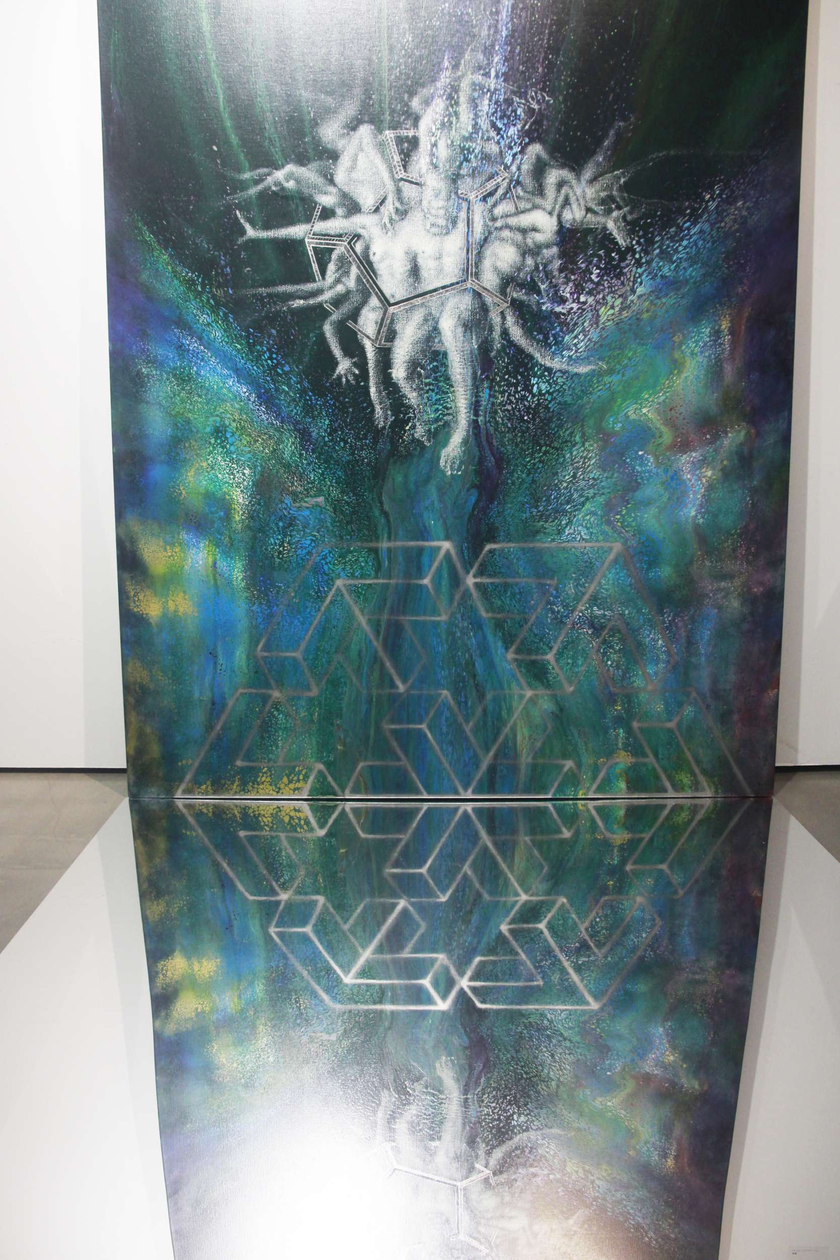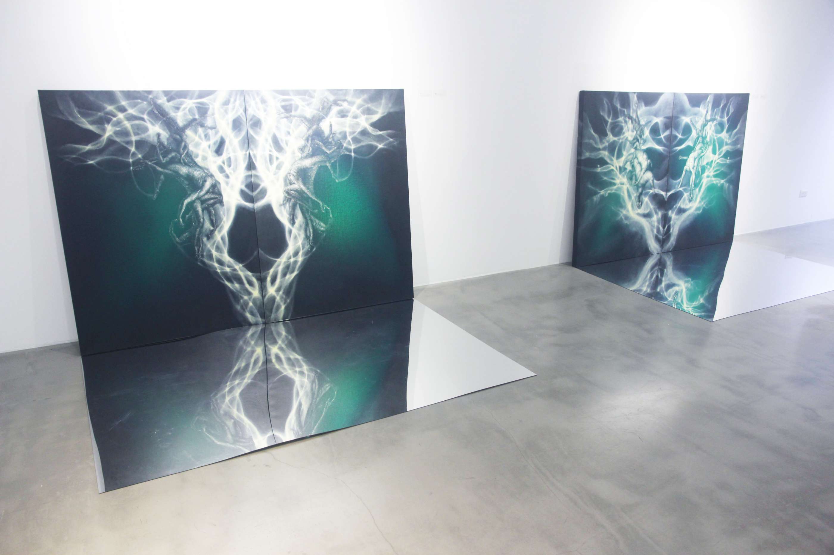 蔡宛錦在這場展覽,踏出了過往創作的格局,多方嘗試新的視覺型態組合及變化,以平面繪畫及部分繪畫結合鏡像裝置,來闡述人在不同情境下與環境間之內在心境和外在疆域盤錯交織的關聯或本質。企圖讓觀者自作品的身體組構及空間構成裡,跳脫對身體與空間慣性的表象視角、物質認知和刻板印象,從而引導自心靈與精神的角度切入,觀察與發現事物或事件隱晦在表面底層的另類真實與現象。藝術家意圖藉由豐富的圖像組成,引發觀者於表象世界之外,同時探詢未知不可見的精神境界與疆域,進而思考自身存在的意義,省思面對生命、他人及環境間,所扮演的角色與旨趣。
