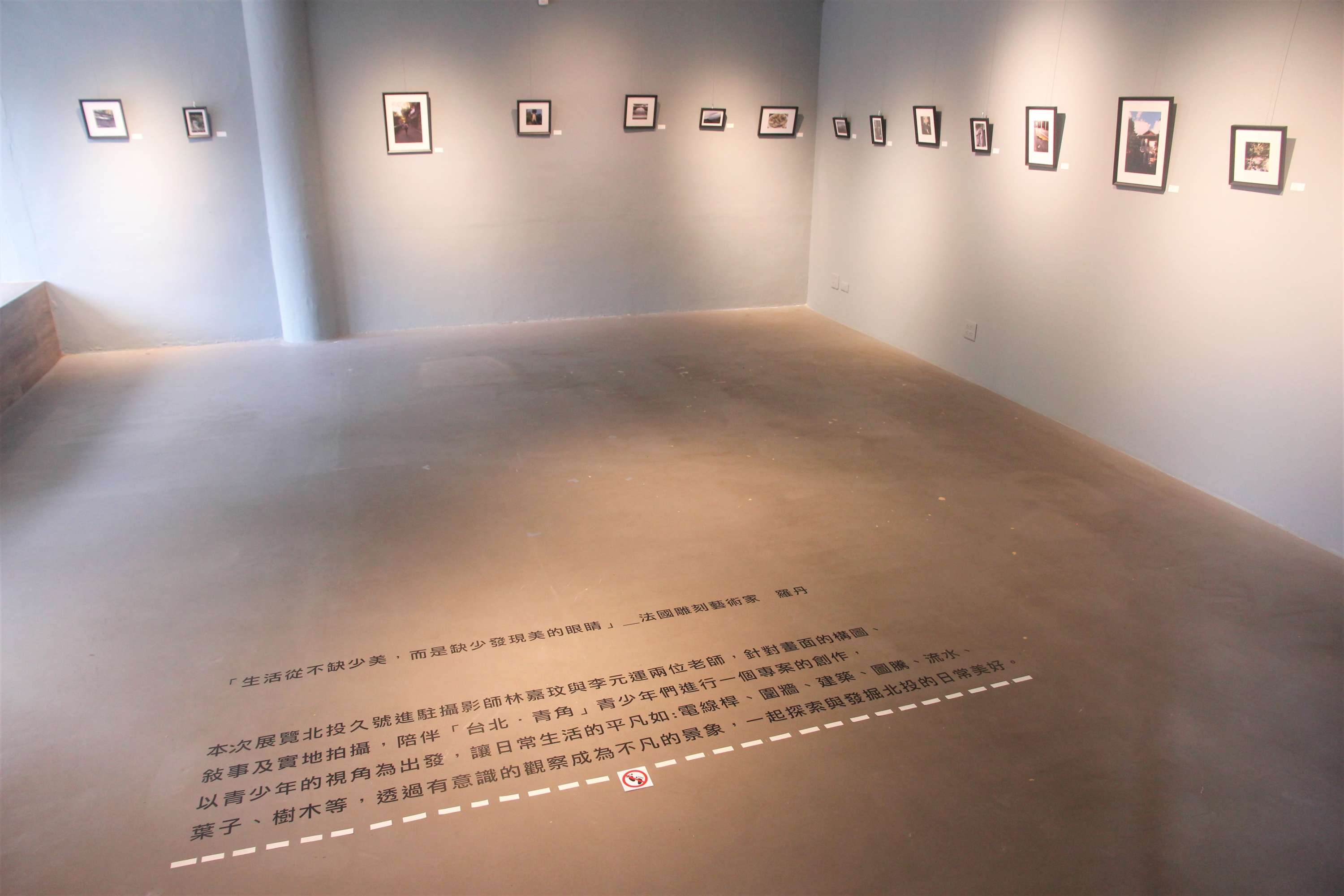 本次展覽北投久號進駐攝影師林嘉玟與李元運兩位老師,針對畫面的構圖、敘事及實地拍攝,陪伴「台北.青角」青少年們進行一個專案的創作,以青少年的視角為出發,讓日常生活的平凡如:電線桿、圍牆、建築、圖騰、流水、葉子、樹木等,透過有意識的觀察成為不凡的景象,一起探索與發掘北投的日常美好。