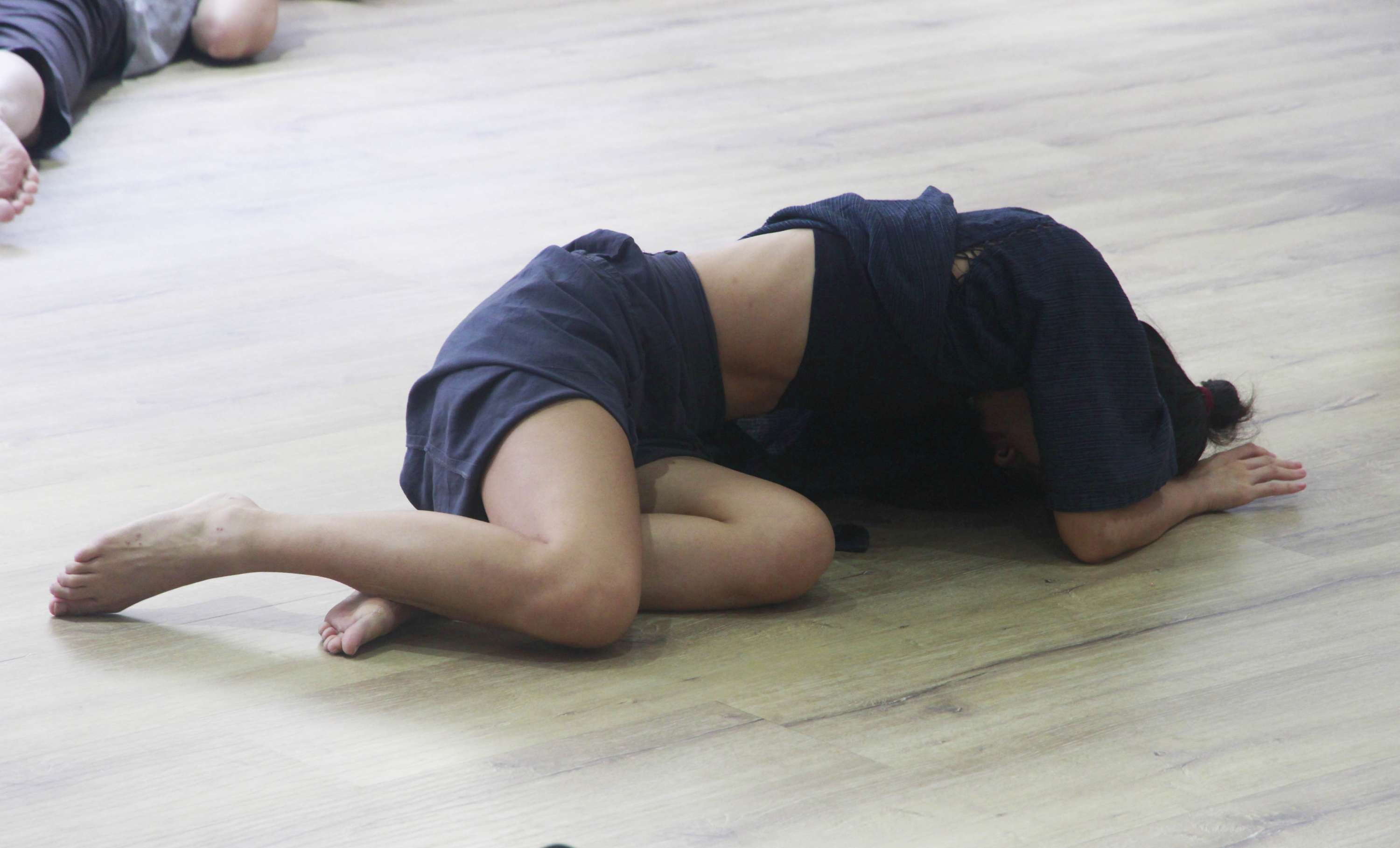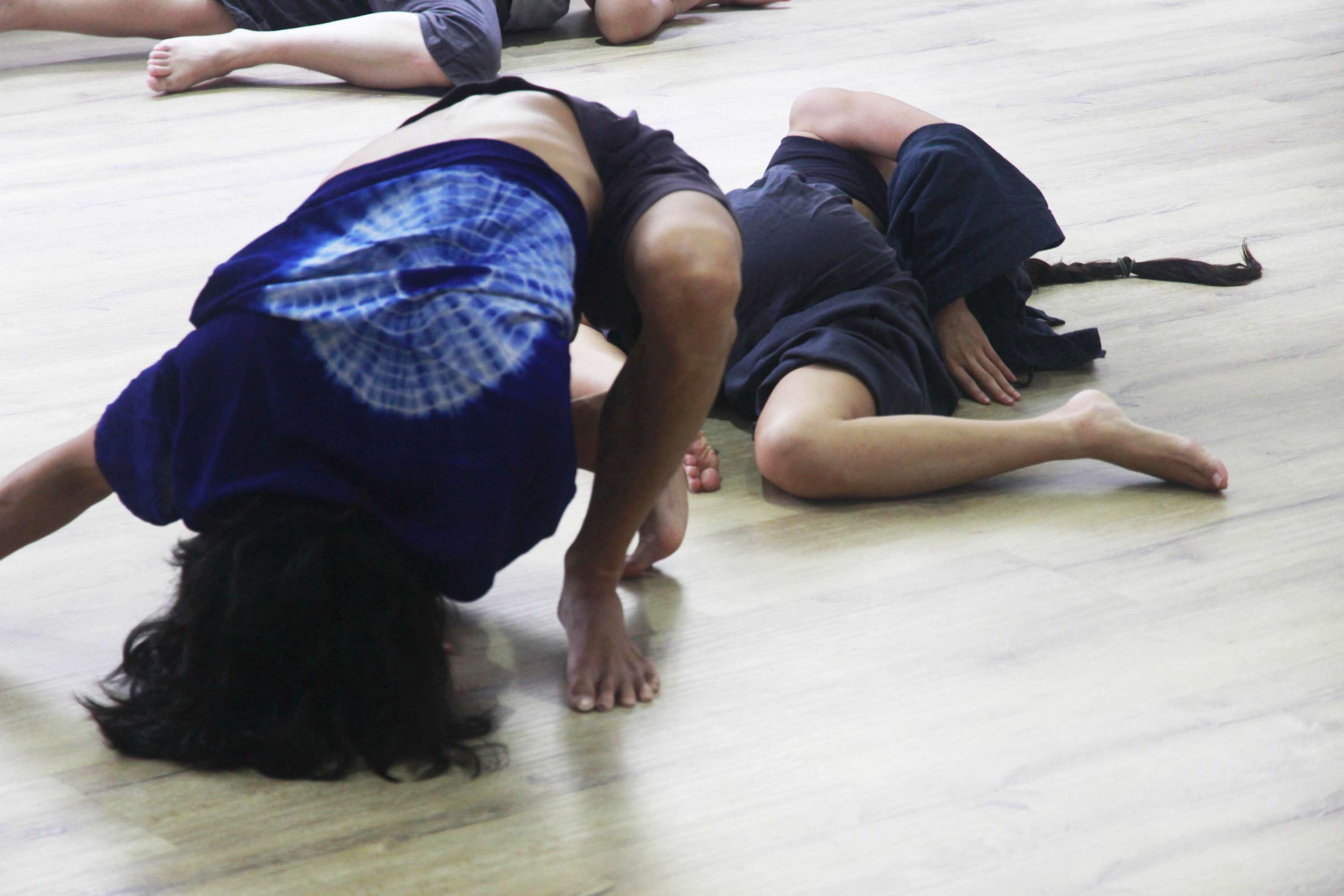 注意力來到腳底,像是樹根深扎入泥土中,舞動者被大地母親支持,交託重量給地面。除了腳底的接觸,也可以用背部、手、脊椎、骨盆、腿 ……去探索。