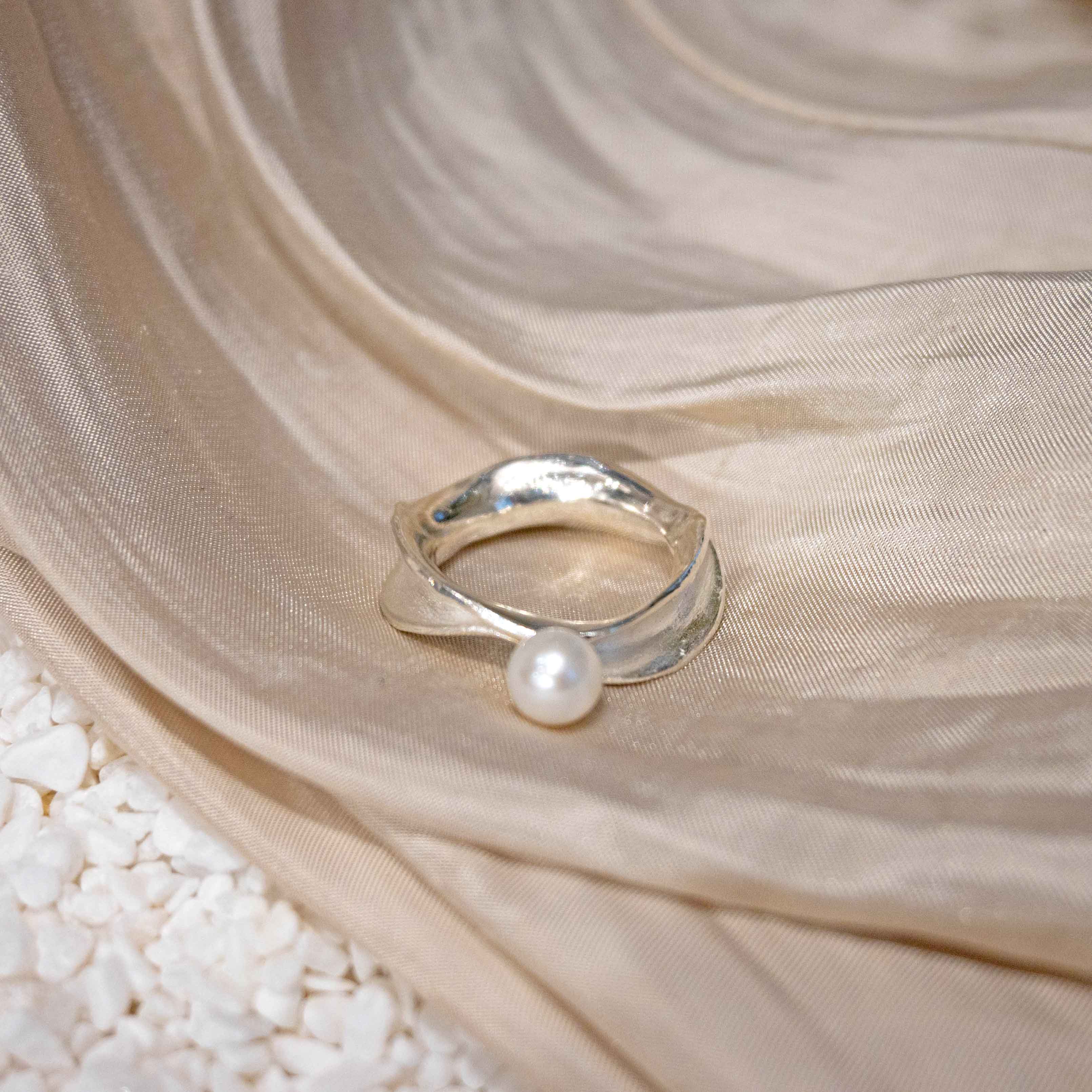 成為自己的金工設計師-珍珠波浪純銀戒指 Pearl Sterling Silver Ring