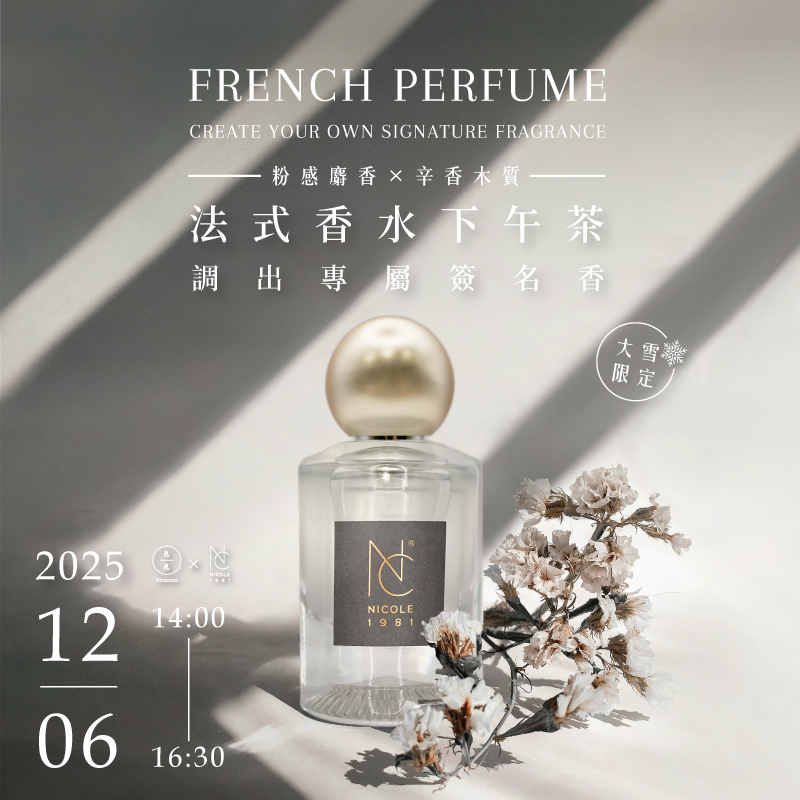 【大雪限定】(粉感麝香調 × 辛香木質)法式香水下午茶-調出專屬簽名香 French Perfume - Create Your Own Signature Fragrance