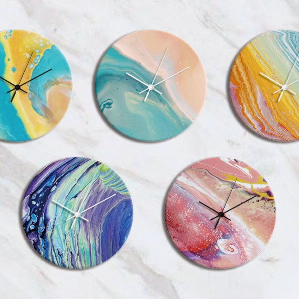滴答的時鐘不間斷地走著,靜靜地細數著生活的每一刻,但它平凡的外表,其實可以穿上一襲彩衣,而這件衣服應該「自己做」。用流動畫繽紛的色彩妝點,用顏色與創意在鐘面上恣意漫遊,創作出獨一無二的療癒之作,讓你的房間不再只是房間,而是美麗的私人風景。