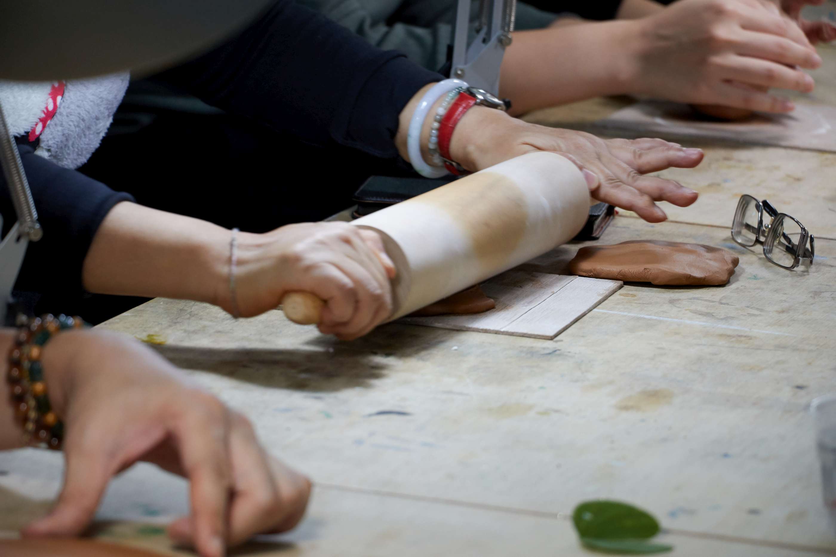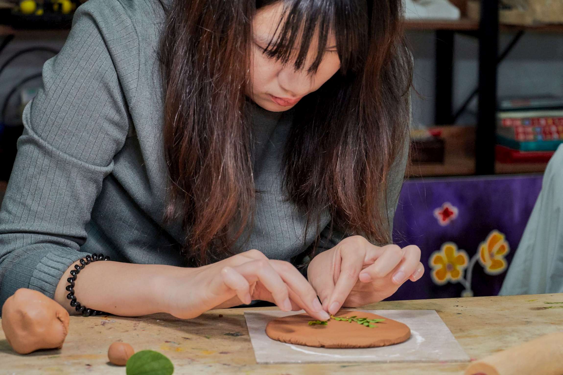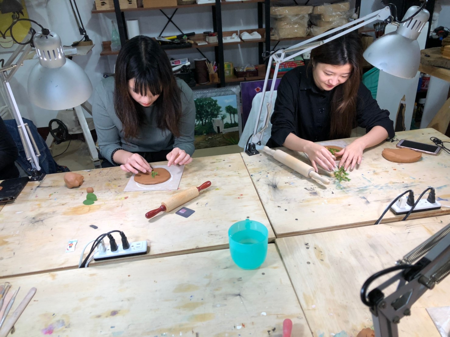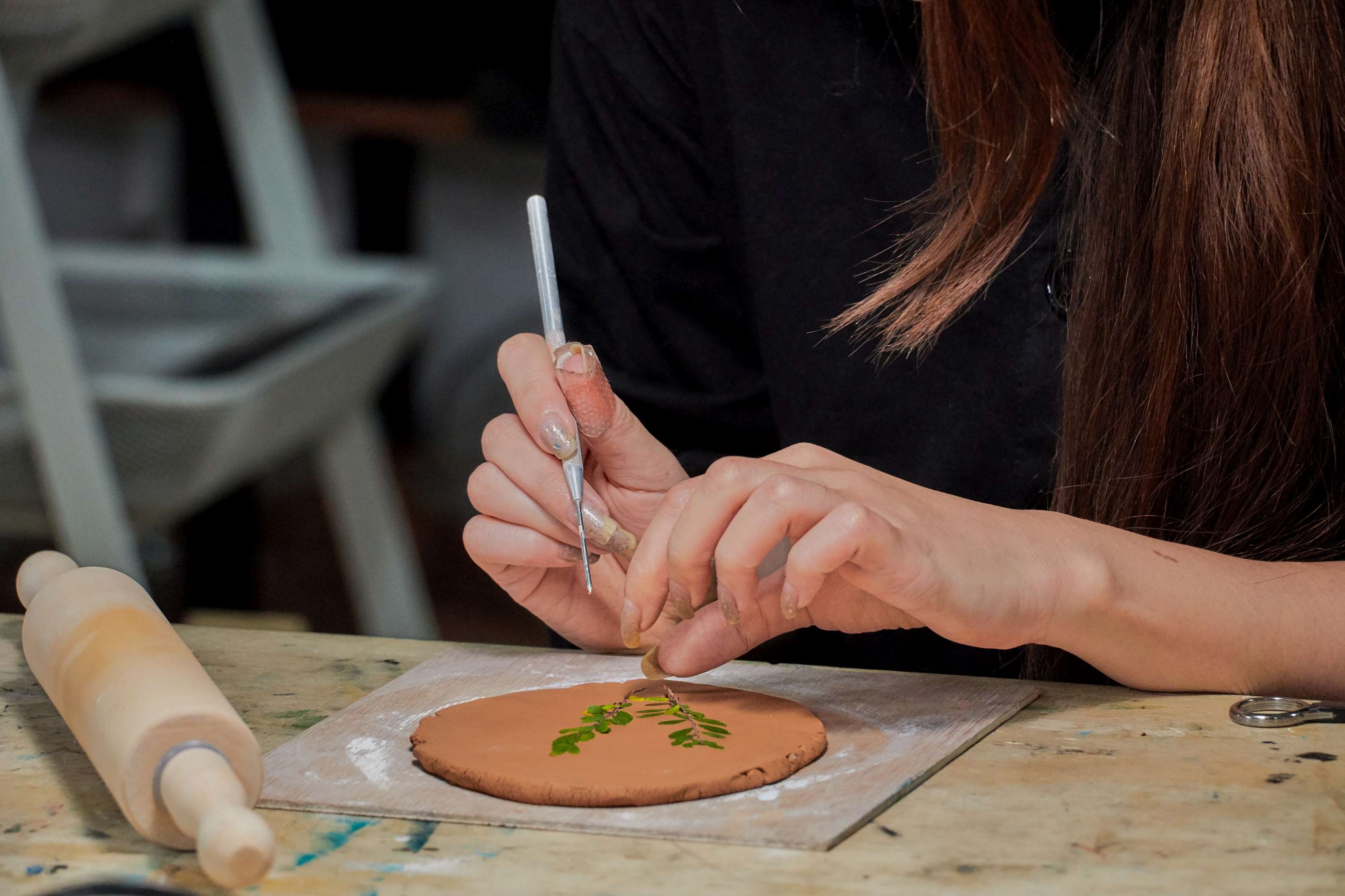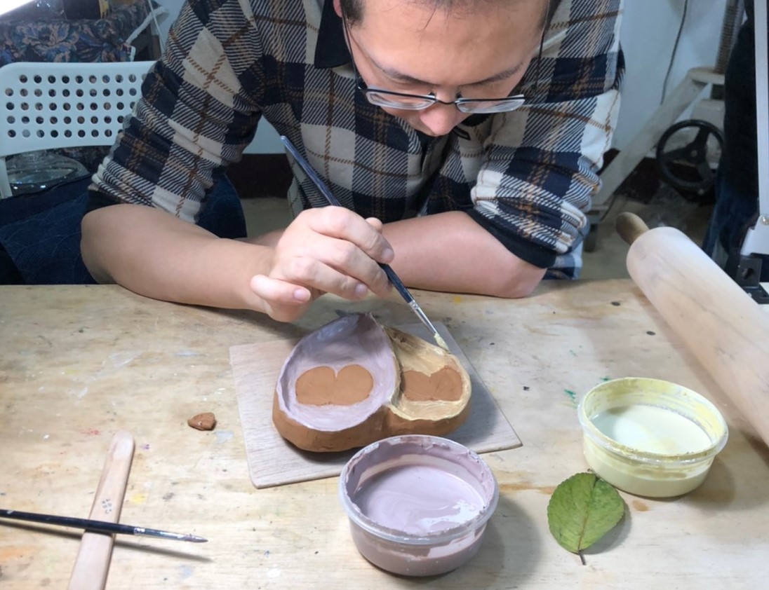 由藝術家耿怡文親自帶課,選用自然素材,將植物轉印在陶土上,手作杯盤器皿。