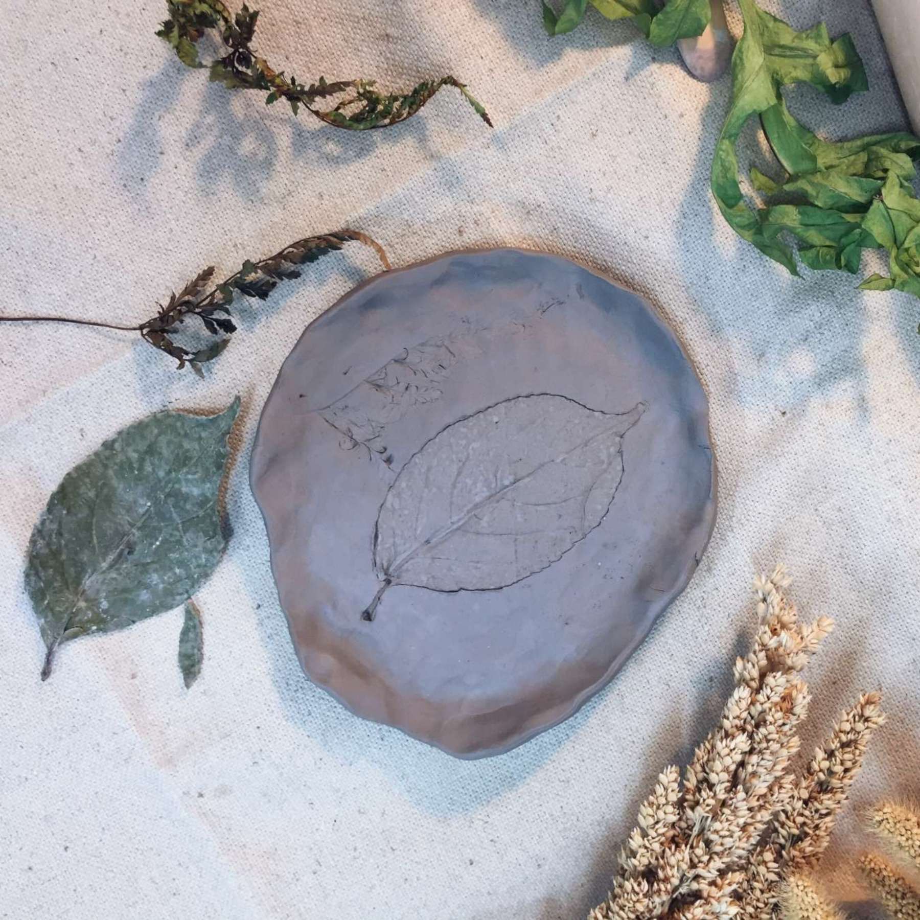 陶土植物壓花小盤