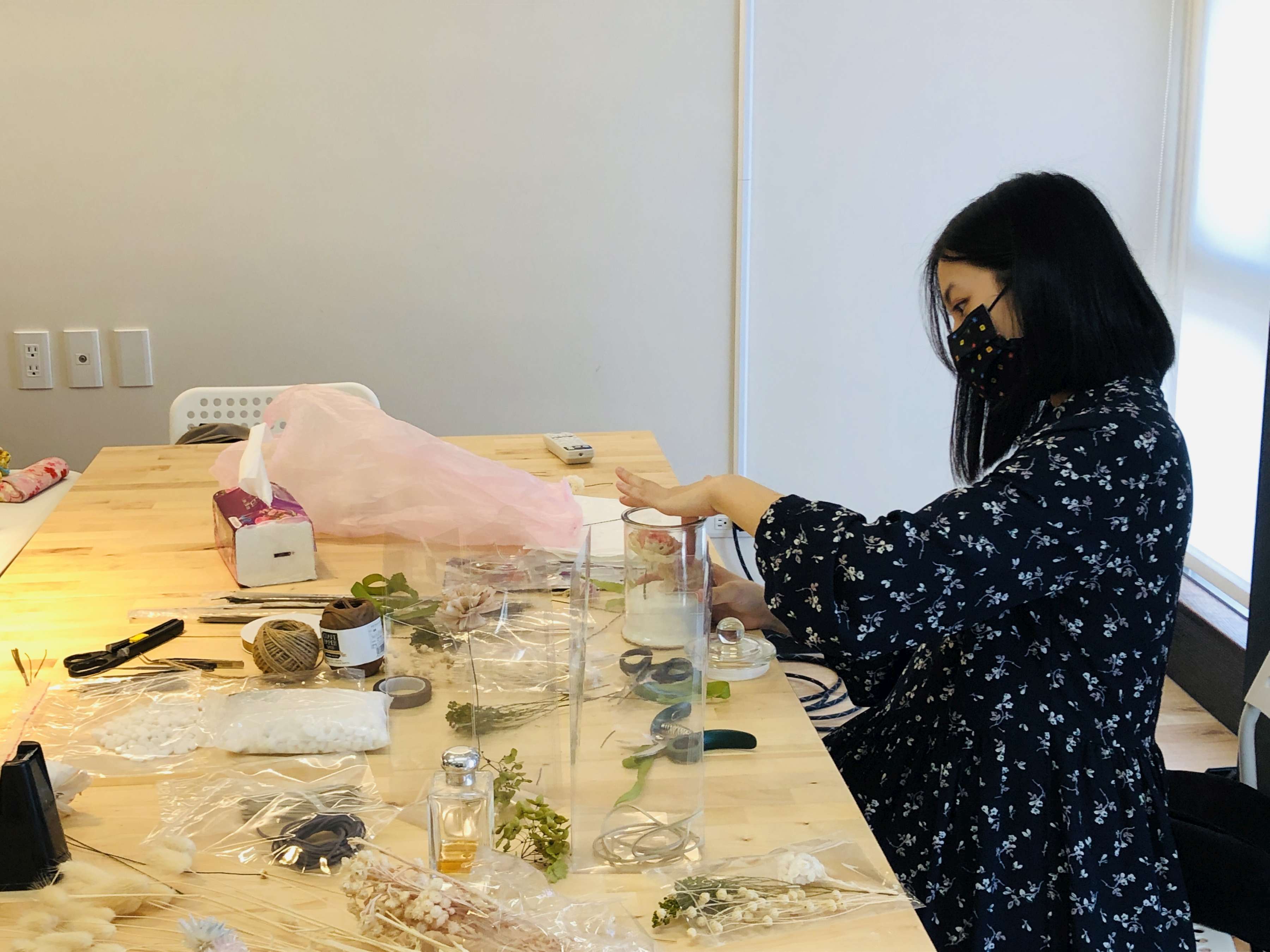 2.利用材料包內的花材進行製作