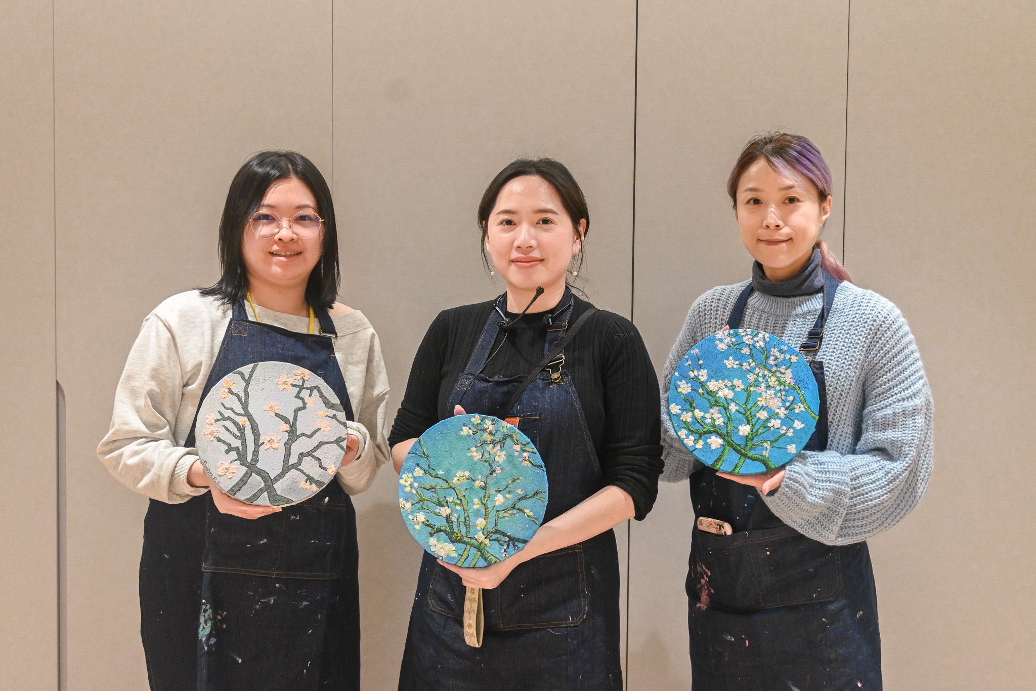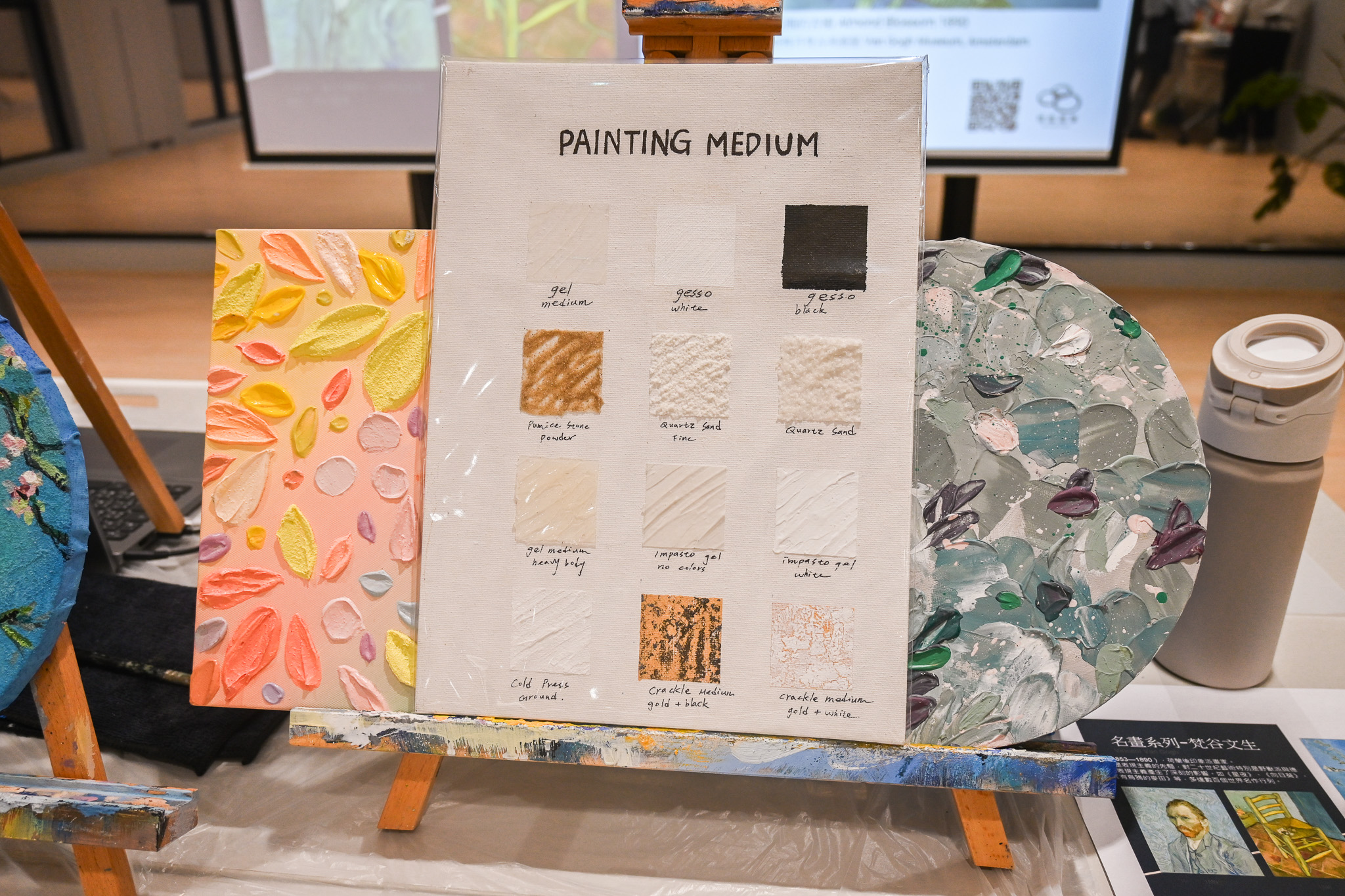 以刮刀堆疊肌理,重現梵谷筆觸的律動感;