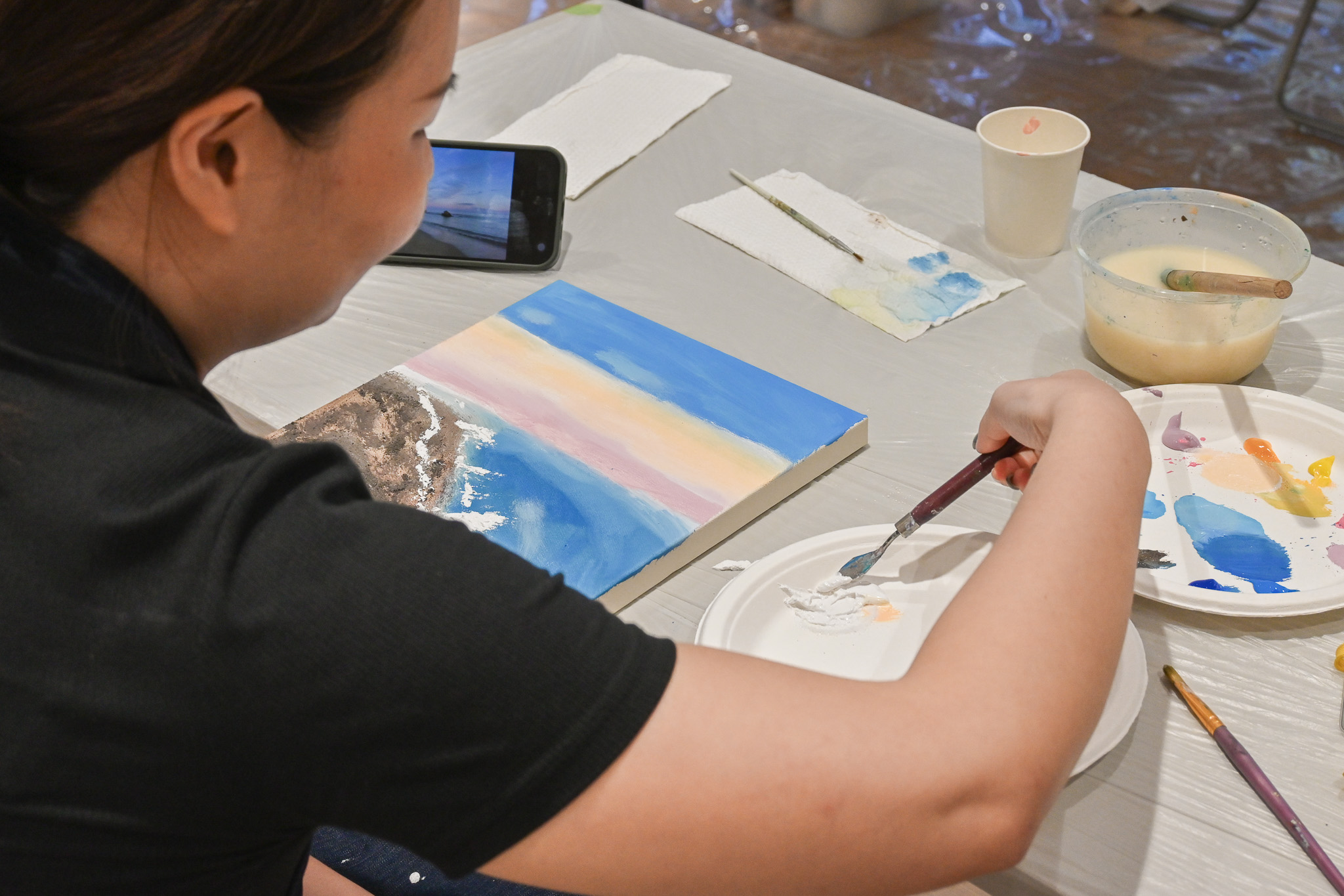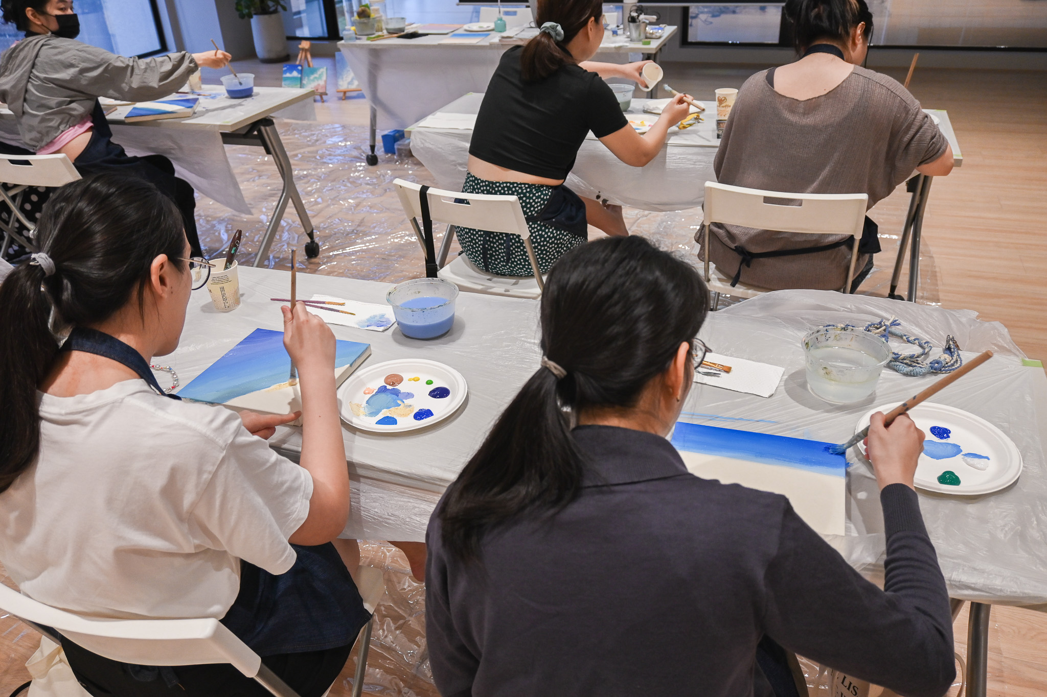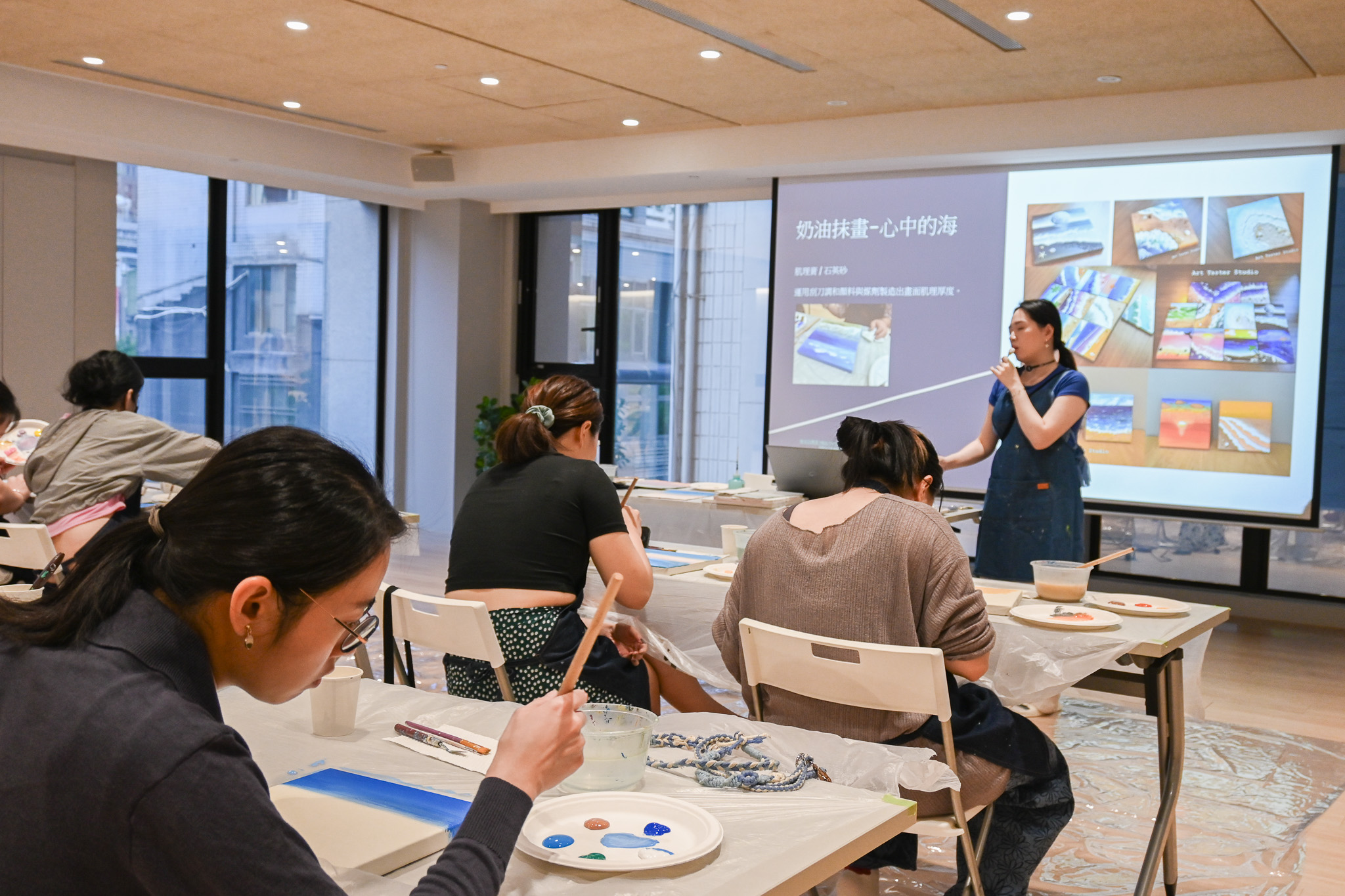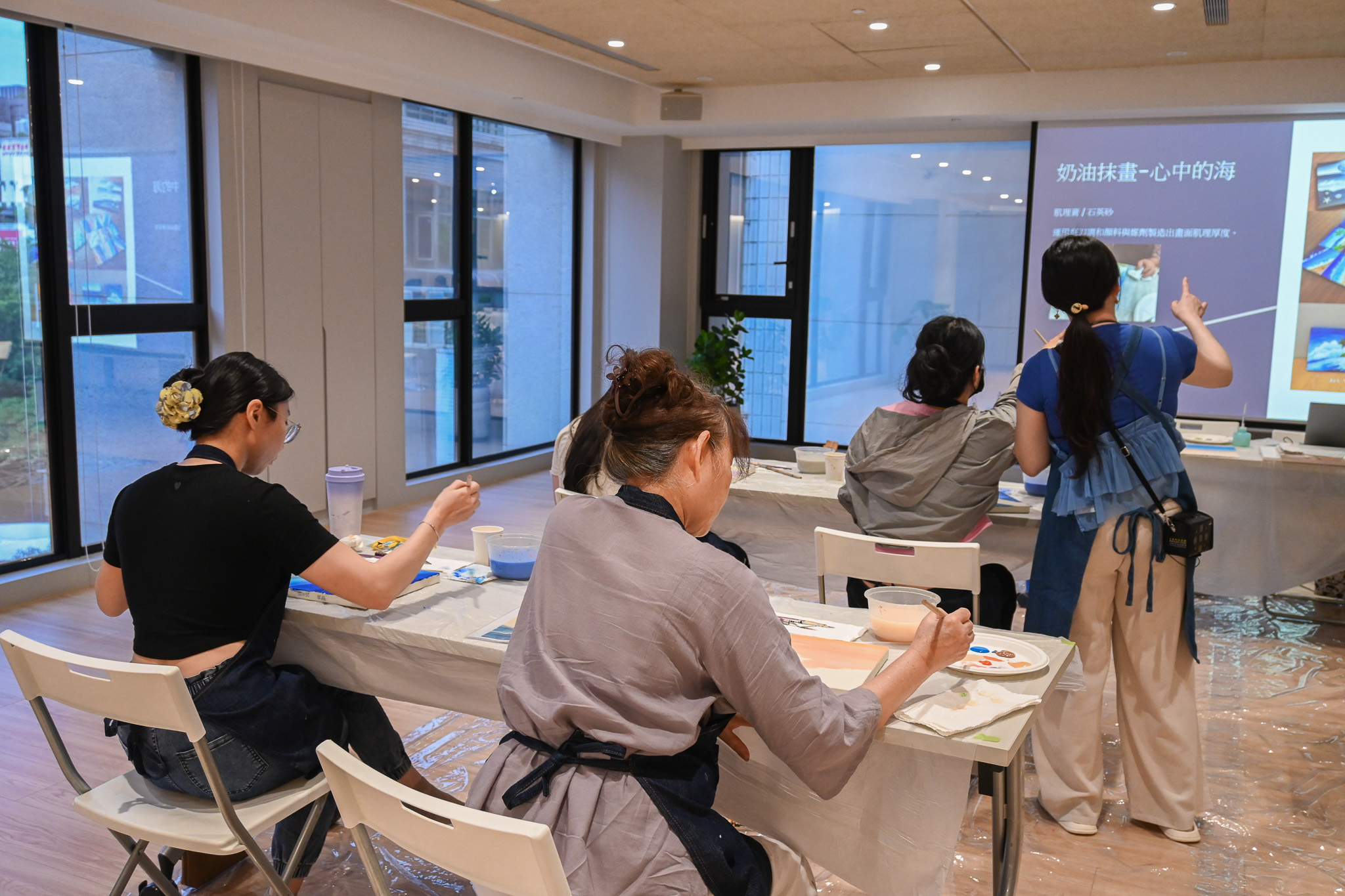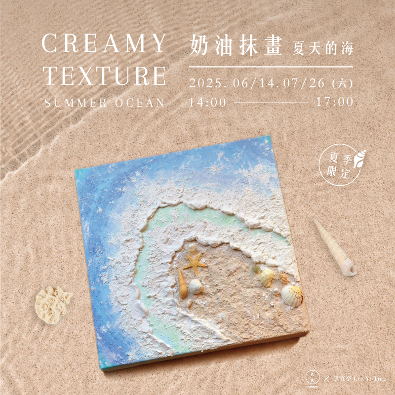 這個夏天一起跟著老師花一個下午的時間,學習調色技巧,了解不同刮刀的運用,逐步將你的心中那片海畫出來,讓每一層顏色、每一筆塗抹都成為放鬆與治癒的過程,讓我們一起在這片夏天的海洋中,找到屬於自己的色彩與節奏。