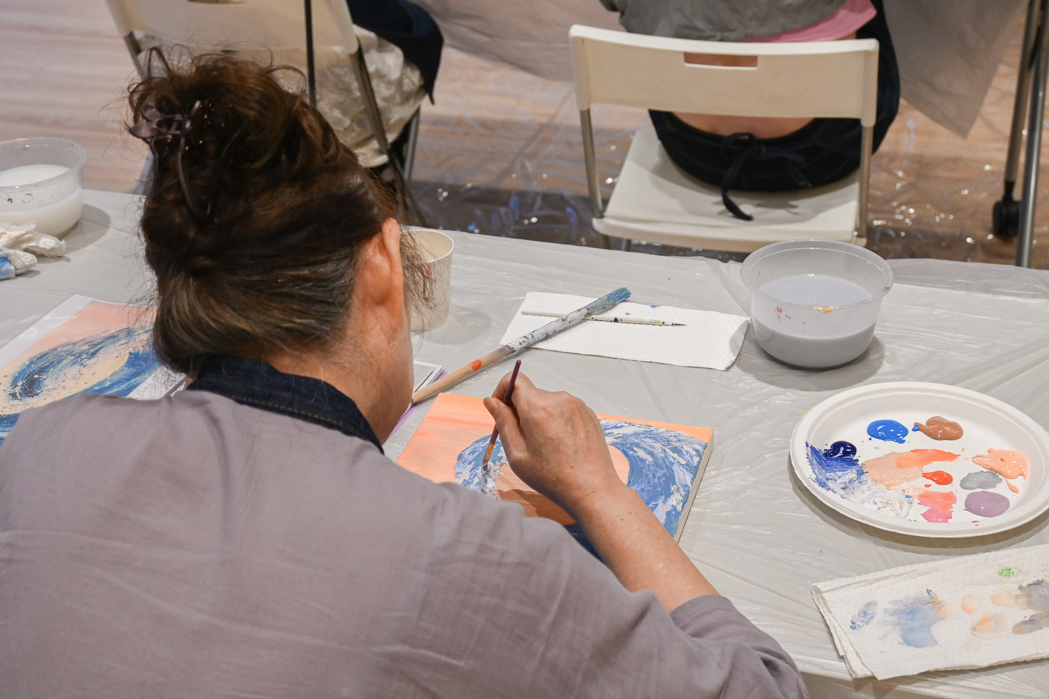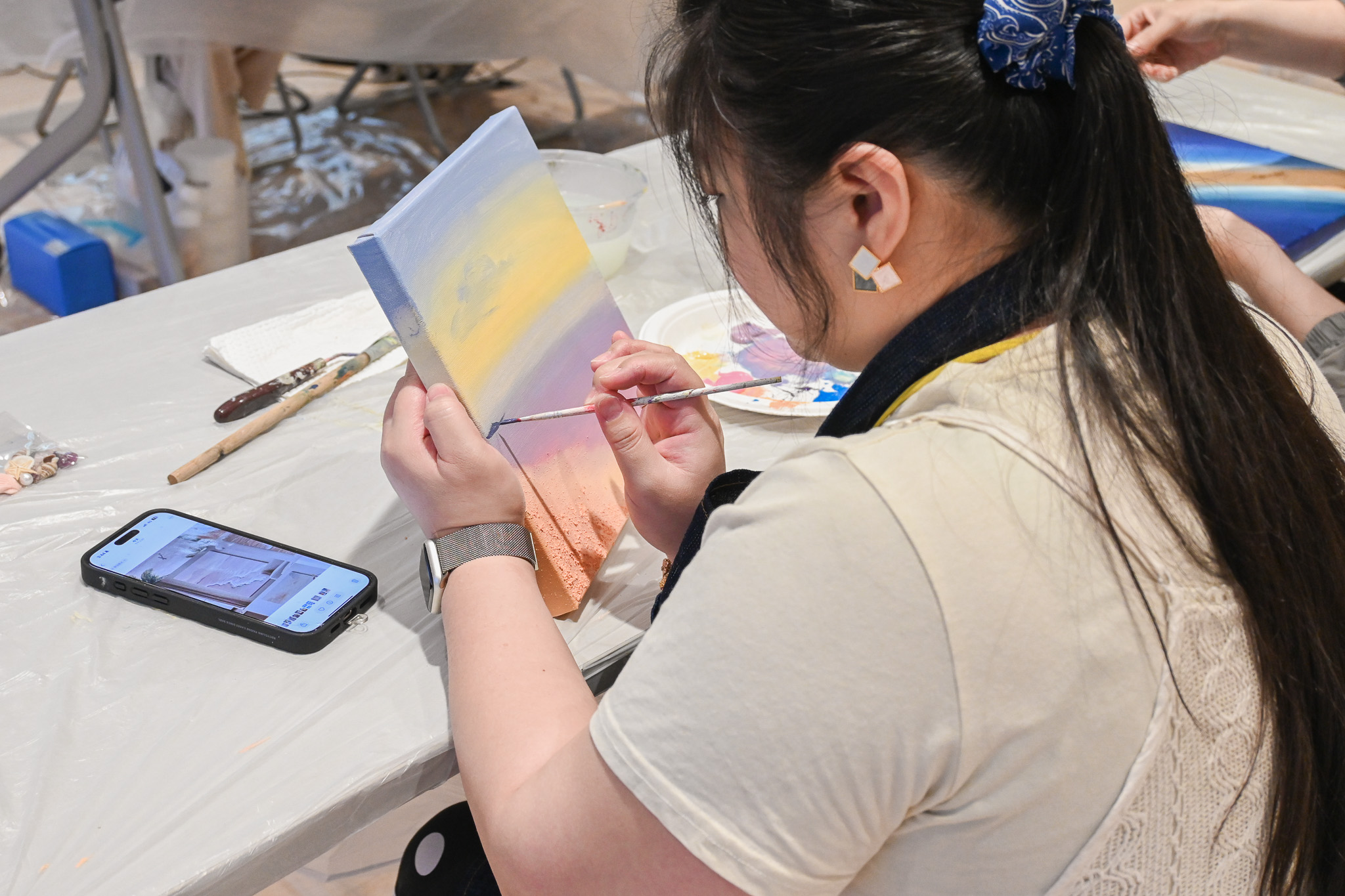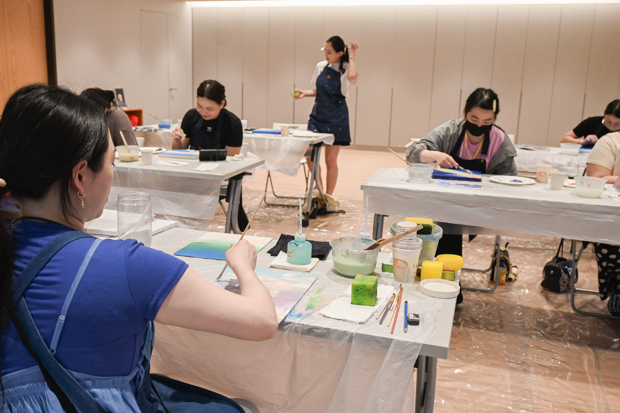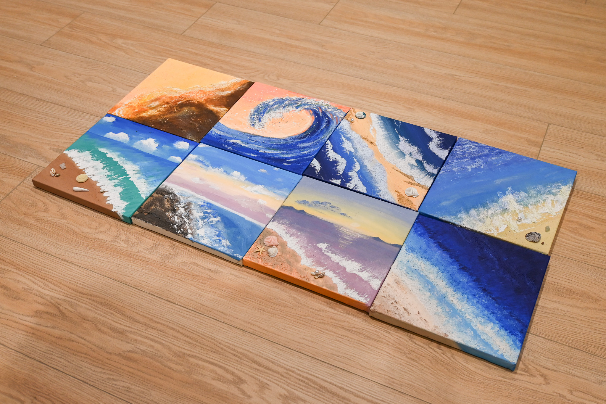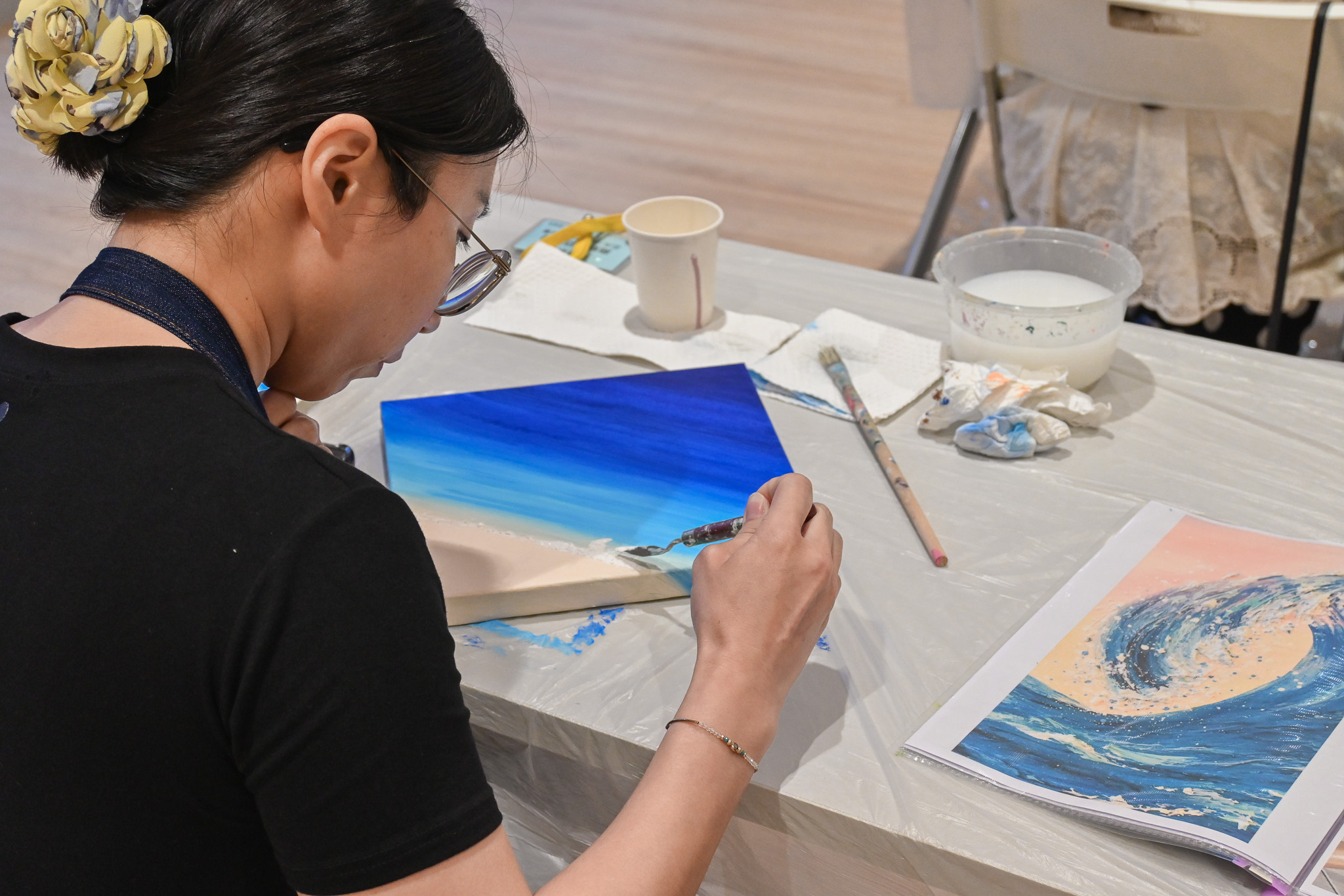 這個夏天一起跟著老師花一個下午的時間,學習調色技巧,了解不同刮刀的運用,逐步將你的心中那片海畫出來,讓每一層顏色、每一筆塗抹都成為放鬆與治癒的過程,讓我們一起在這片夏天的海洋中,找到屬於自己的色彩與節奏。