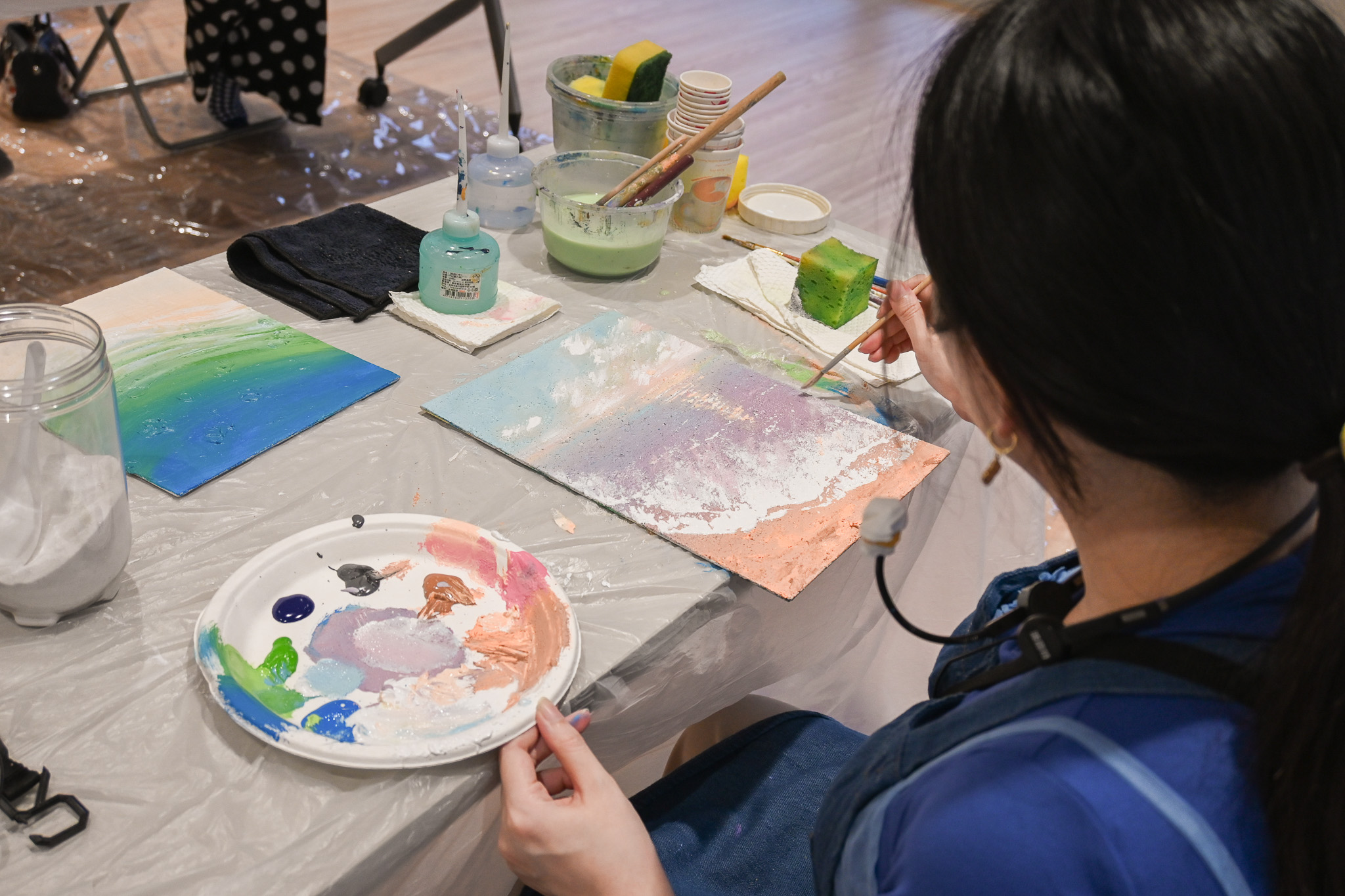 2.可自選色系,老師提供繪畫引導教學及肌理膏教學。