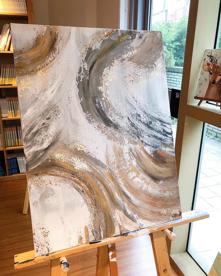 這堂課程將由學員自己選擇想畫的抽象圖片,客製自己的獨創作品,在一堂課的時間裡,你會體驗到如何運用壓克力顏料和金箔黏貼去完成第一幅時尚精緻的抽象畫作。