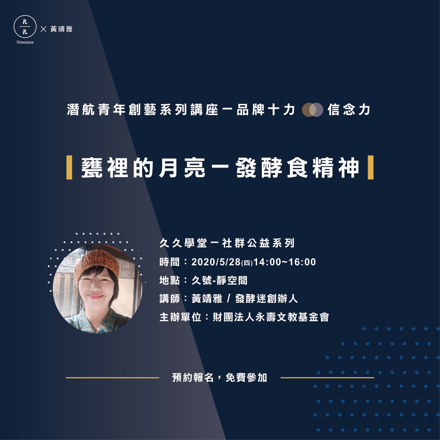 「品牌十力」- 2020北投久號潛航青年創藝系列講座」 信念力:甕裡的月亮~發酵食精神