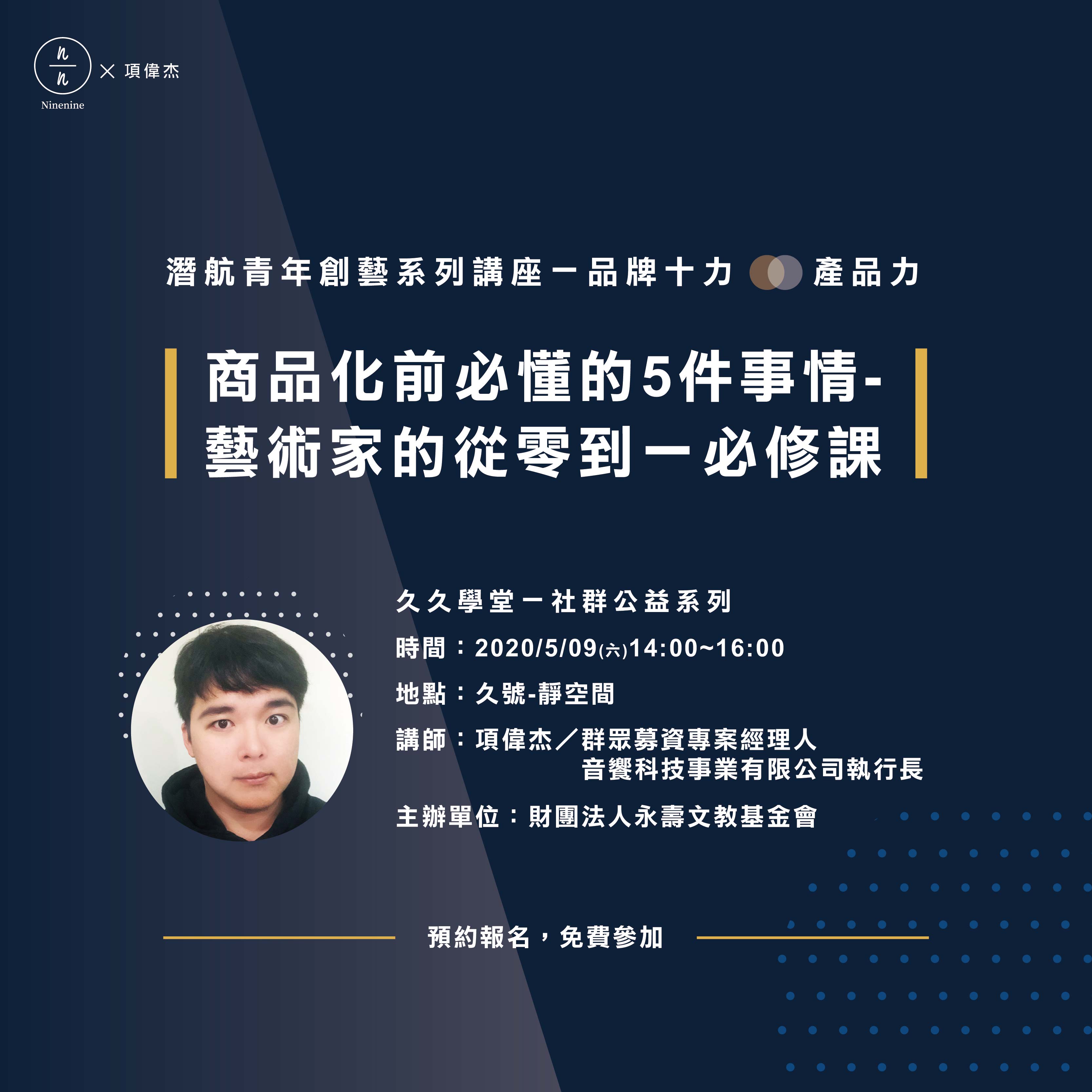 「品牌十力」- 2020北投久號潛航青年創藝系列講座」 產品力:商品化前必懂的5件事情-藝術家的從零到一必修課