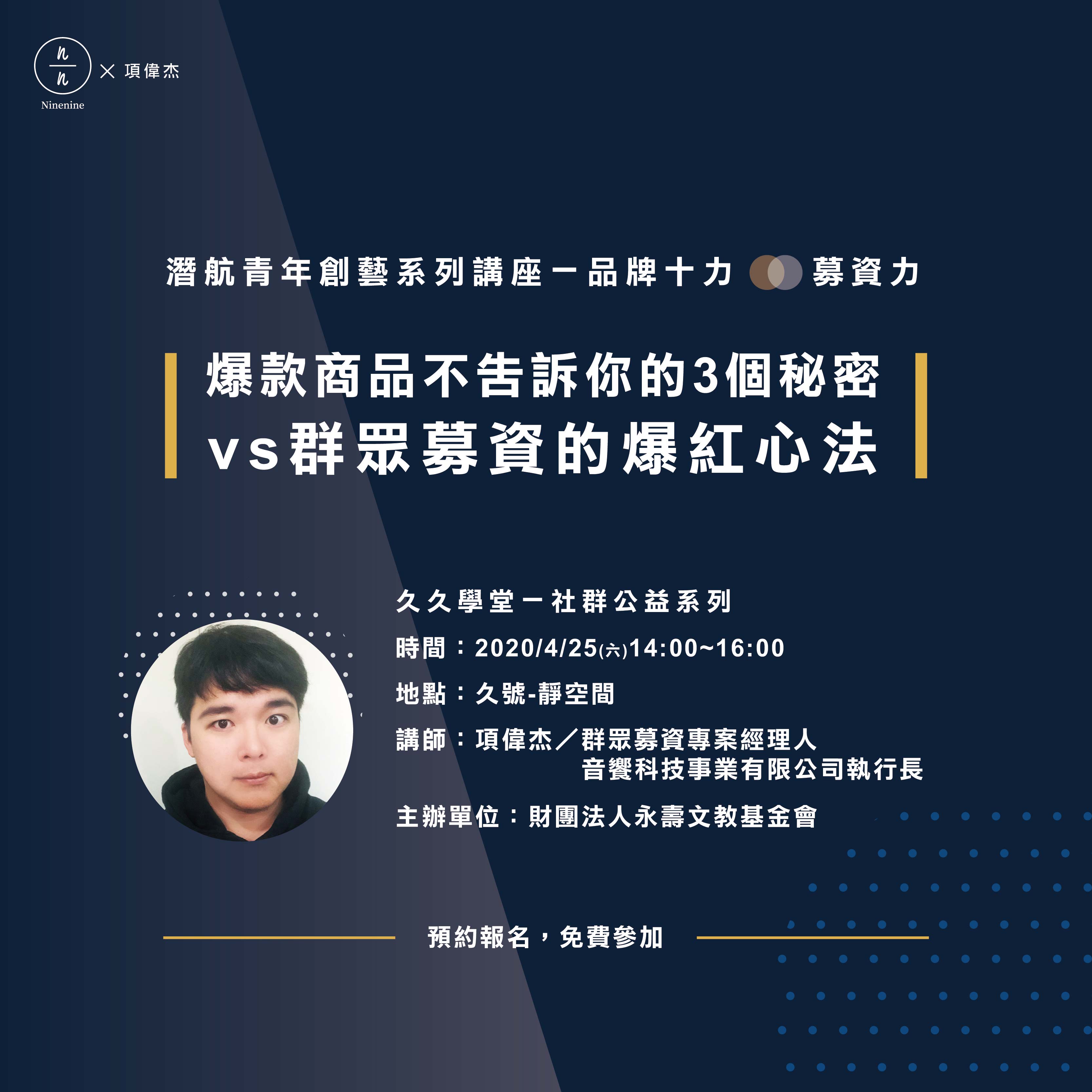 「品牌十力」- 2020北投久號潛航青年創藝系列講座」 募資力:爆款商品不告訴你的3個秘密vs群眾募資的爆紅心法